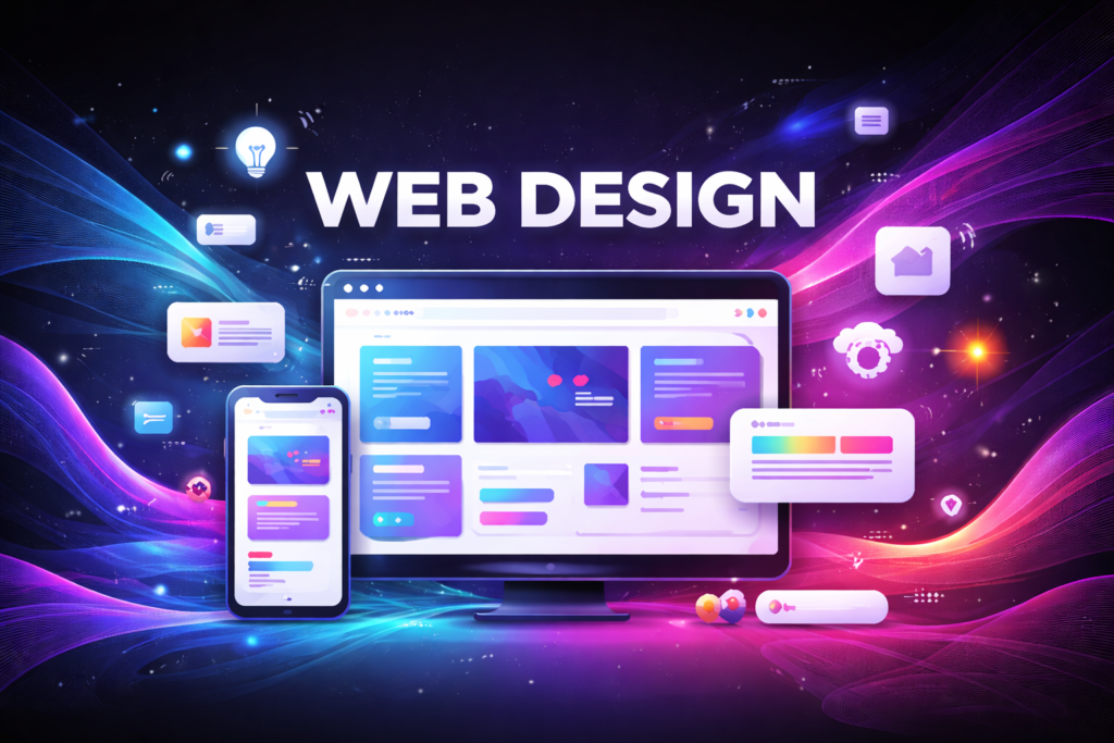 Web Design is the process of creating and designing the visual layout and structure of a website. It focuses on user experience, responsiveness, and attractive design to ensure the website is professional, functional, and easy to navigate.
